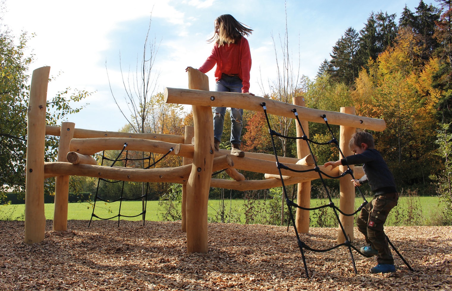 Robinienstämme eignen sich hervorragend zum Bau von Kinderspielgeräten.