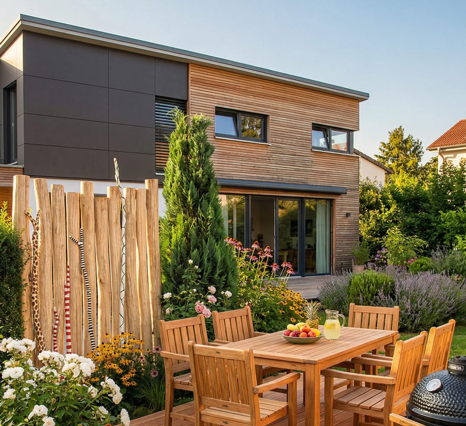 Wir empfehlen eine Behandlung der Oberflächen mit Holzgrundieröl sowie den Schutz der