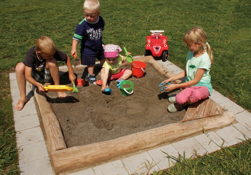Der Sandkasten ist für Kinder ab drei Jahren geeignet. Er bietet durch die breiten